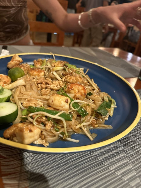 팟타이, 오징어 그릴, 버팔로윙 이렇게 주문했는데 세 개 다 맛있었다. 더운 날씨라 시원한 맥주는 필수..!🤭